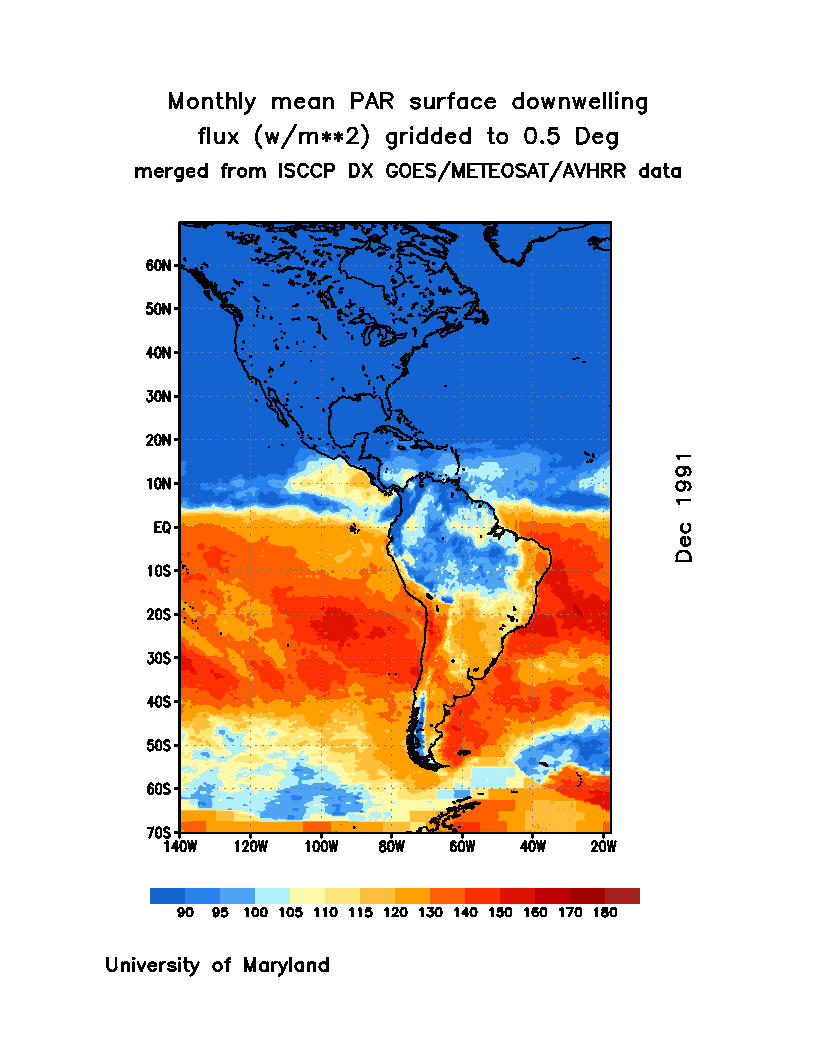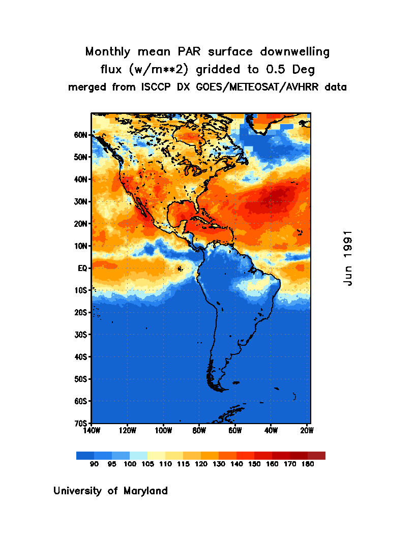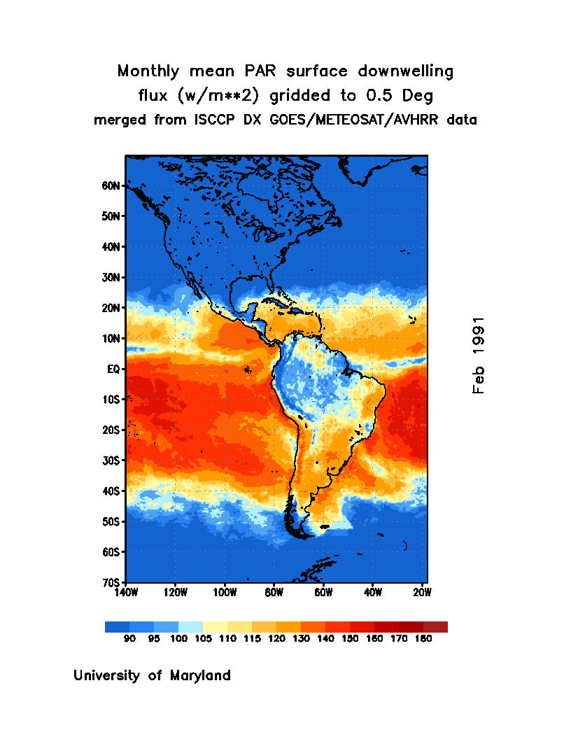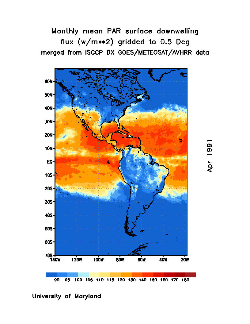 Monthly Mean PAR Surface Downward Flux (Wm-2)