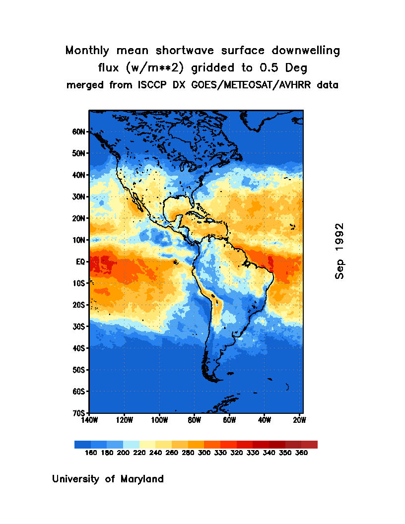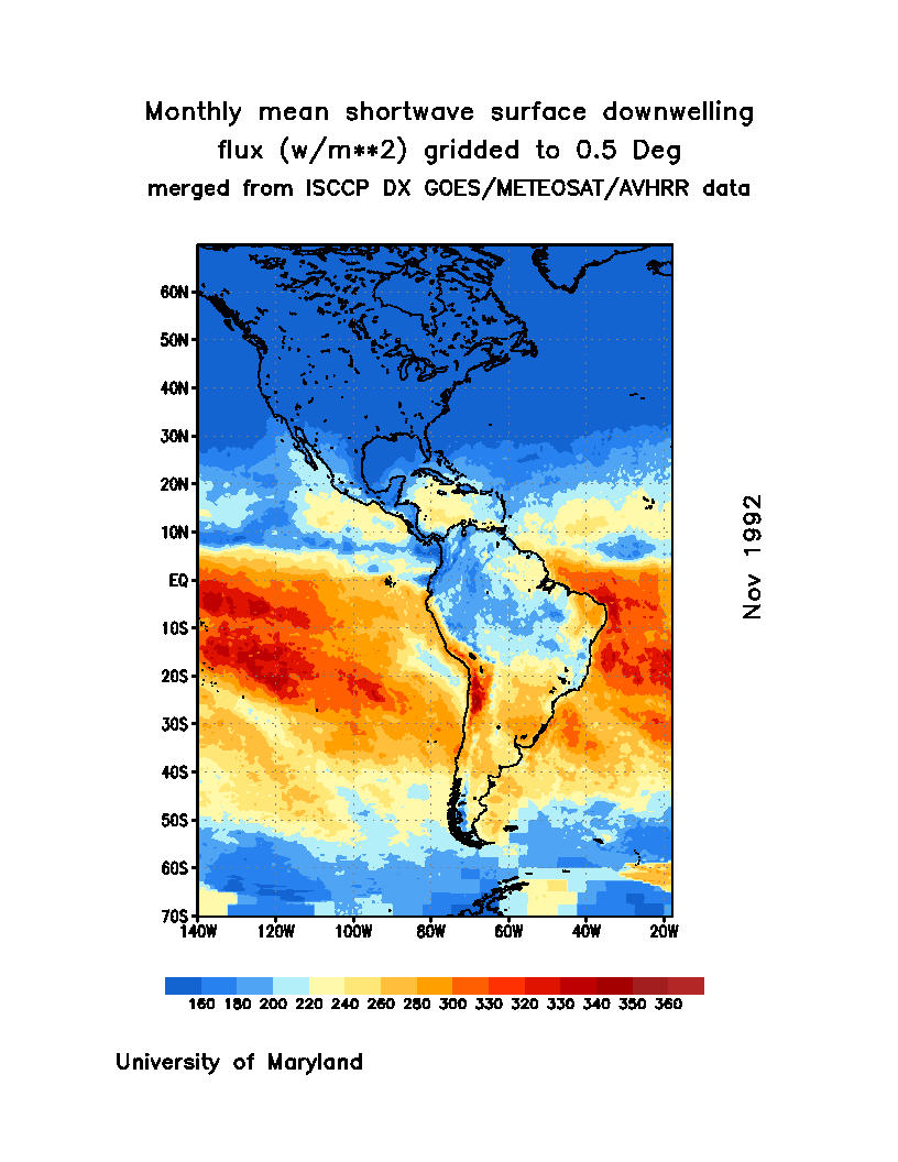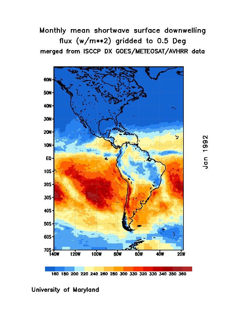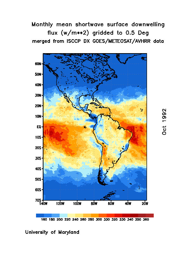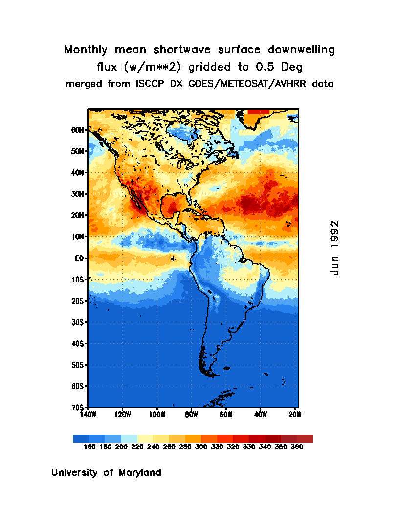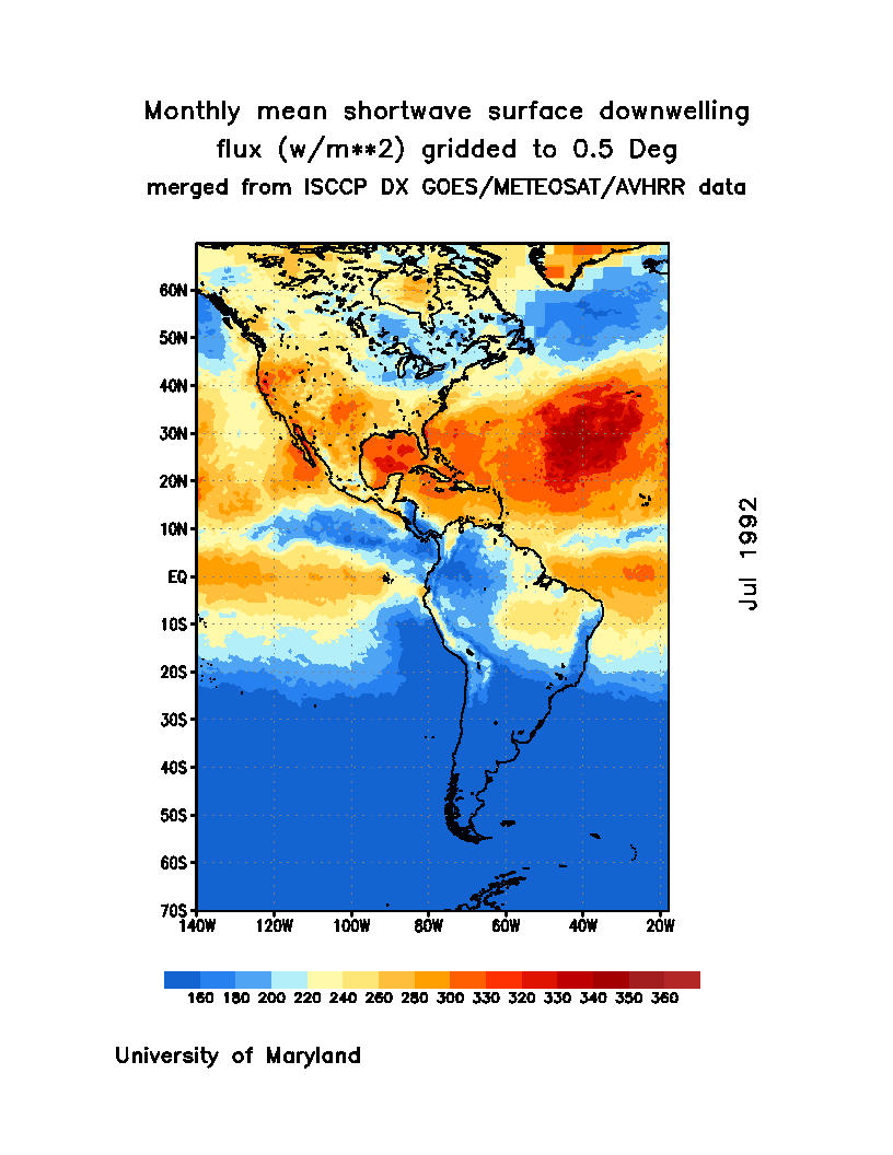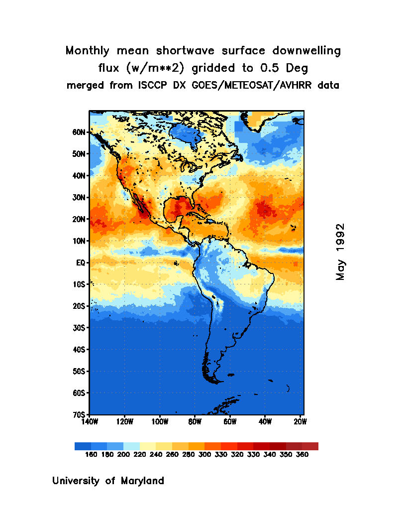 Monthly Mean Shortwave Surface Downward Flux (Wm-2)